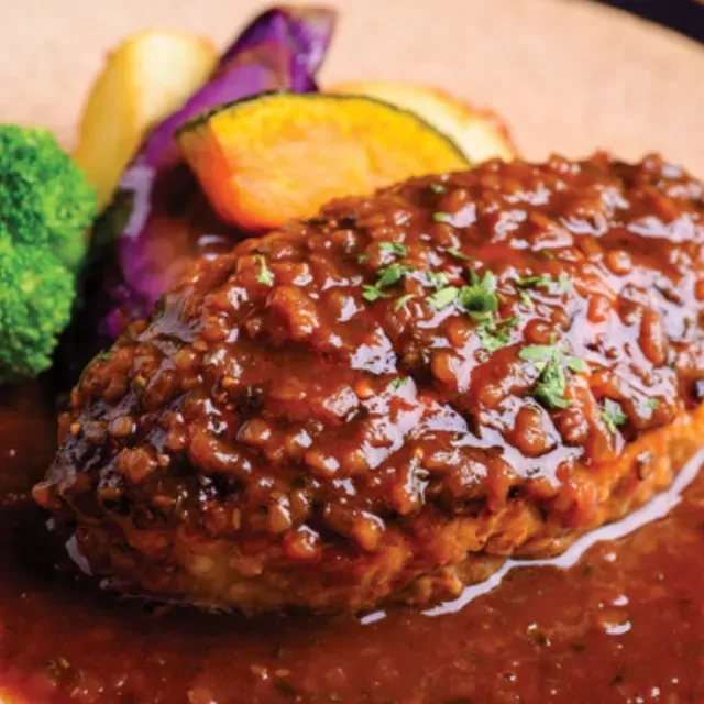 ベーシックなデミグラスソースハンバーグ。どんなトッピングにも合います!