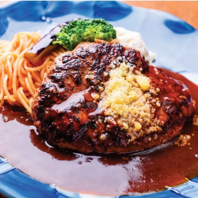 味噌や和風だしを合わせて、作った特製デミグラスソースはご飯とよくあいます! そしてハンバーグの中には……