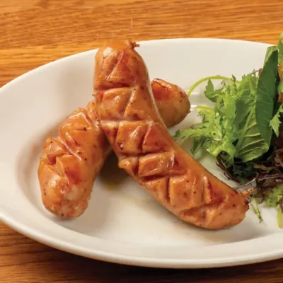 太めの粗挽きソーセージを2本、気軽に頼んで頂けるサイズです。ビールやサワーが進むこと間違いなし!