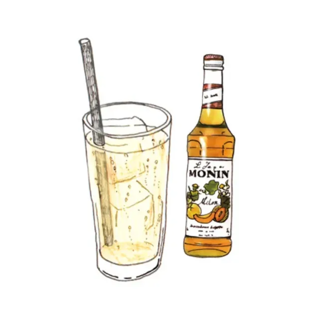 緑じゃありませんから、お子様のテンションは上がらないかもしれません。(笑)大人のメロンソーダです。
