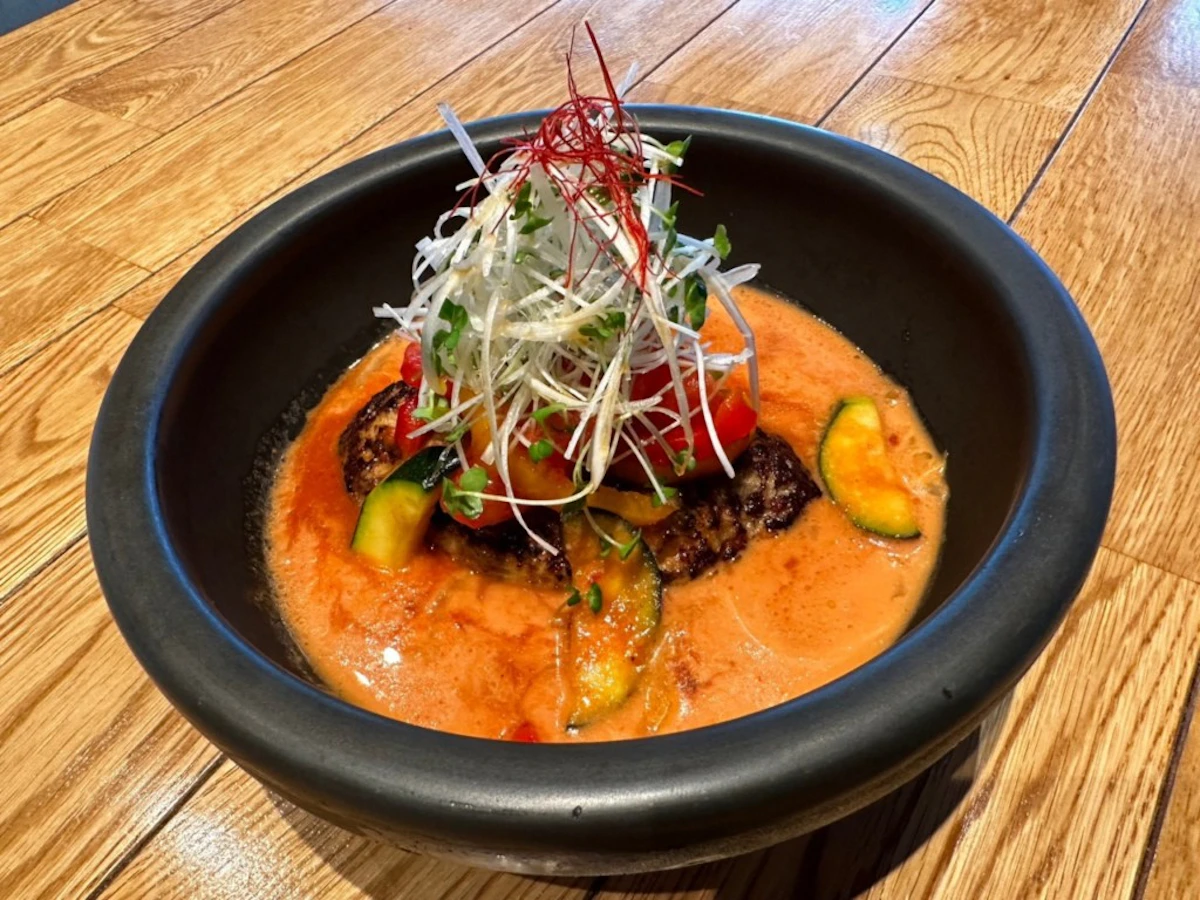 「韓国風冷やしトマト坦々ハンバーグ 彩り旬野菜と共に」セット 1,680円(税込)単品 1,380円(税込)