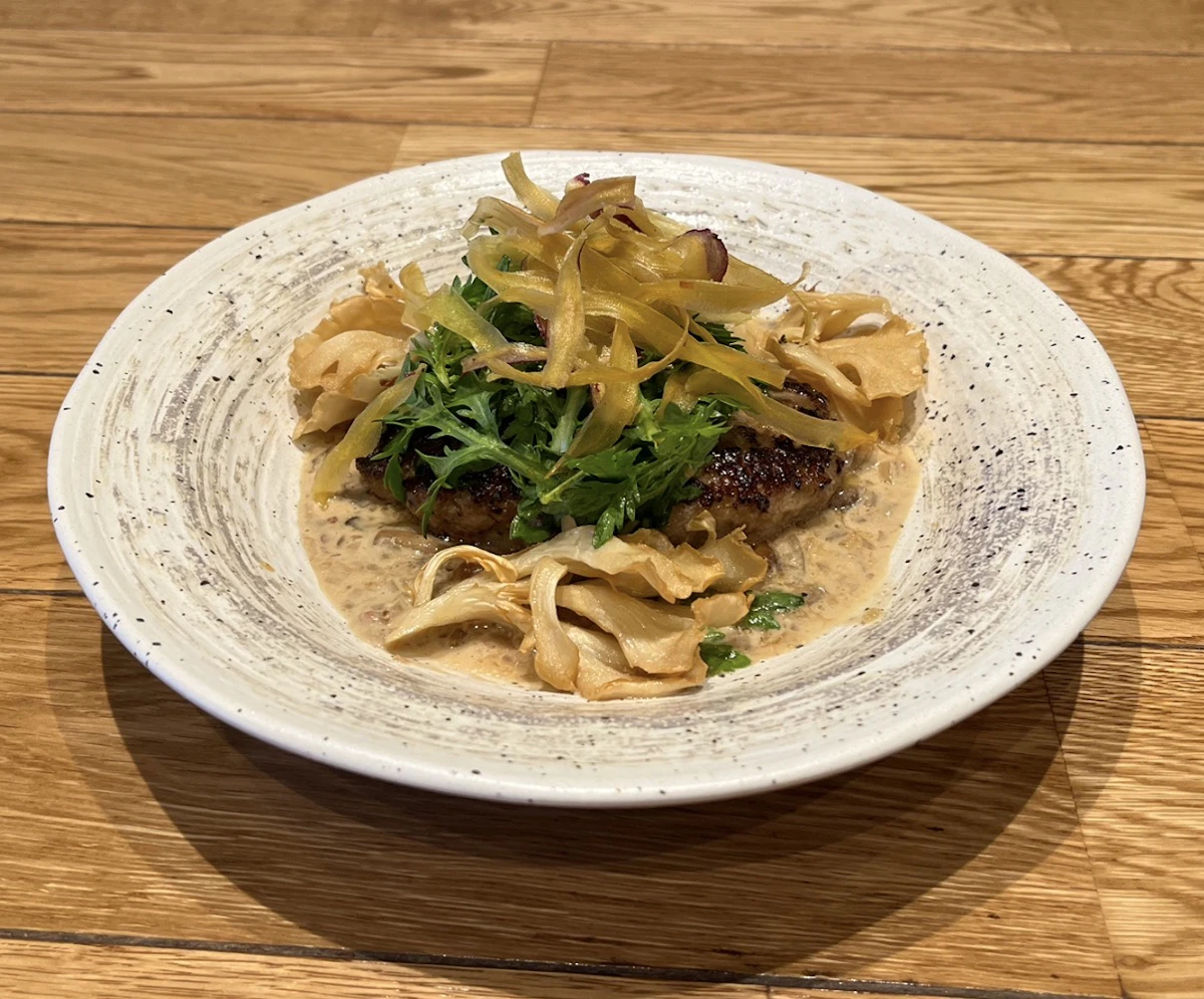 白舞茸の素揚げとさつまいもチップもアクセントになっています。