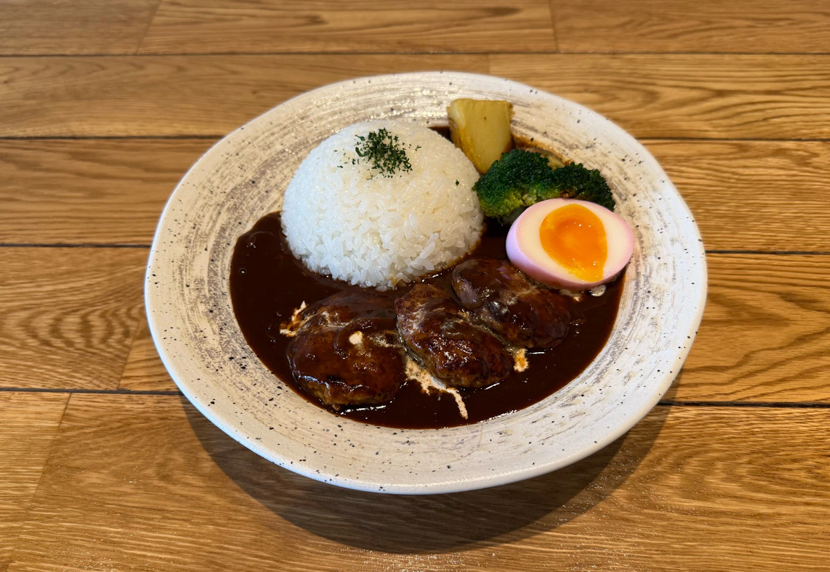 美味しくてビターなハヤシライスにハンバーグ。