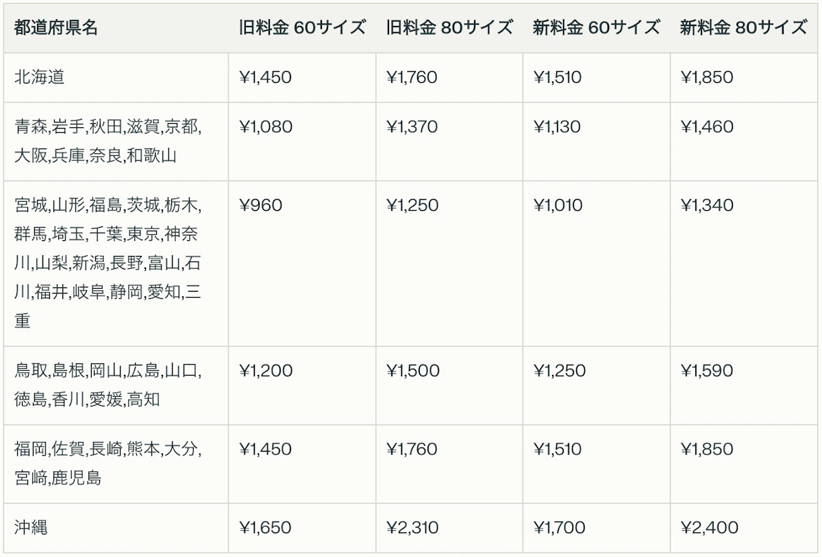 お客様には誠に恐縮ではございますが、この度、ヤマト運輸の送料値上げに伴い配送料金の改定をさせていただくこととなりました。