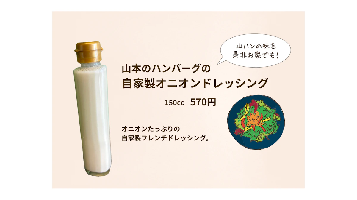 国産玉ねぎの旨みと白醤油の風味を生かした、山ハン創業からのオリジナルドレッシング。